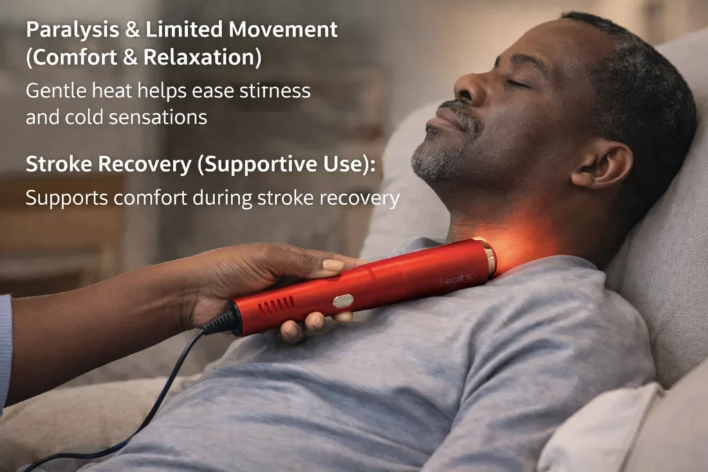 It is a powerful home-use therapy device designed to deliver deep, comforting warmth that penetrates the body, helping you relax muscles, ease tension, and feel refreshed without stress, drugs, or hospital visits.